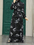 This beautiful soft chiffon maxi evokes a feminine mood. Made from a lightweight chiffon fabric, it features a round neckline, long blouson sleeves with elastic cuffs and a tie wrap around the waist.
