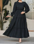 The Faridah tiered maxi dress is made from a soft and breathable fabric and features a comfortable elastic sleeves. Perfect for outdoor parties or for casual events.